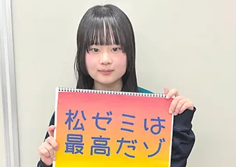 私は中学3年生の夏からお世話になりました。学校の復習テストの出来が良くなく、自分だけの力に限界を感じ、松ゼミの夏期講習から通い始めました。最初は、とても緊張していましたが、先生が明るく接し、教えてくださったので楽しく授業を受けることができました。自分が間違えた部分をどのように答えると良いか、優しくとても分かりやすく教えてくださったことで今まで点がとれなかった問題も点をとることが増え、少しずつ自信を持つことができました。志望校に合格できたのは松ゼミの先生方のおかげです。ありがとうございました。