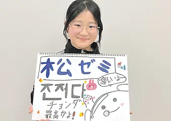 コロナ禍の影響で通っていた塾がなくなり、様々な塾を点々とした後、松ゼミにたどり着いたのは4年前。そのときから松ゼミへ通うことは私の習慣になっています。松ゼミの先生方にはお世話になりました。勉強のことについてはもちろん、悩みや最近あったことなどの相談にも乗ってくださいました。また、上級生の方と一緒のコマになることもあり、まだ習っていない授業の内容を先取りしてこっそり学べるところも、松ゼミのいいところだとひそかに思っていました。高校受験でも、見事第一希望校に合格できたのは、サポートしてくださった先生方のおかげです。このことを忘れず、高校生活をスタートできたらいいなと思います。