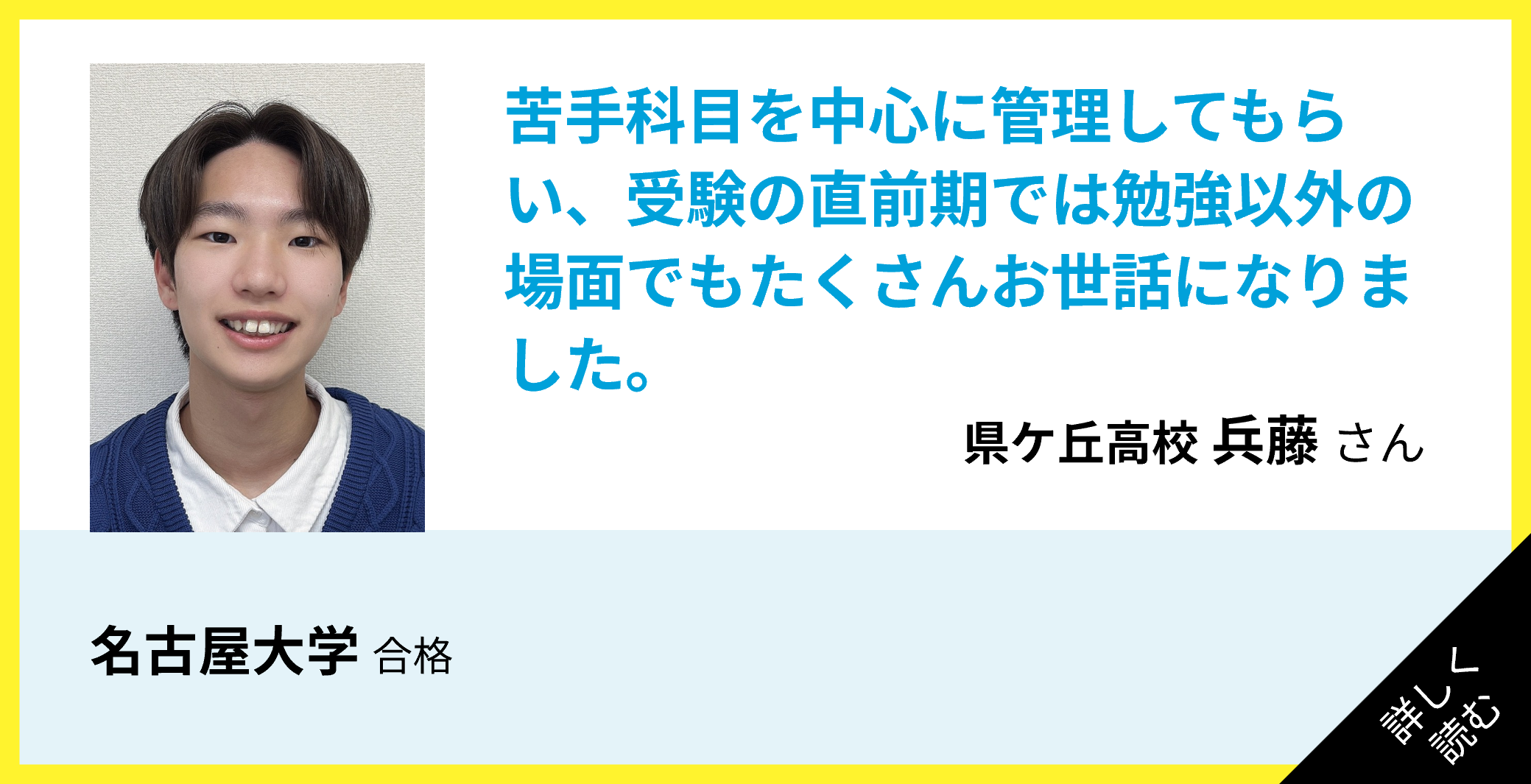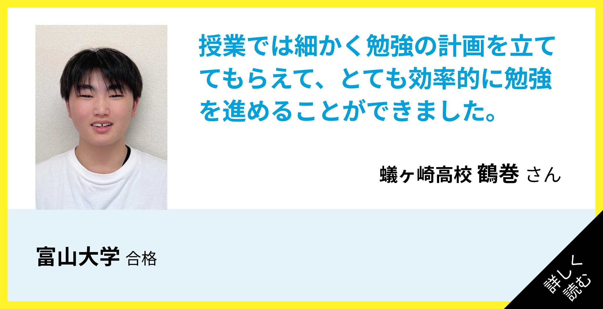 勉強面だけでなく、色々な面からサポートしてくれたおかげで志望校に合格することができました。