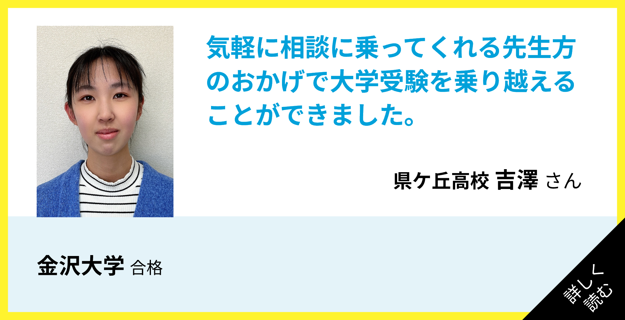 気軽に相談に乗ってくれる先生方のおかげで大学受験を乗り越えることができました。