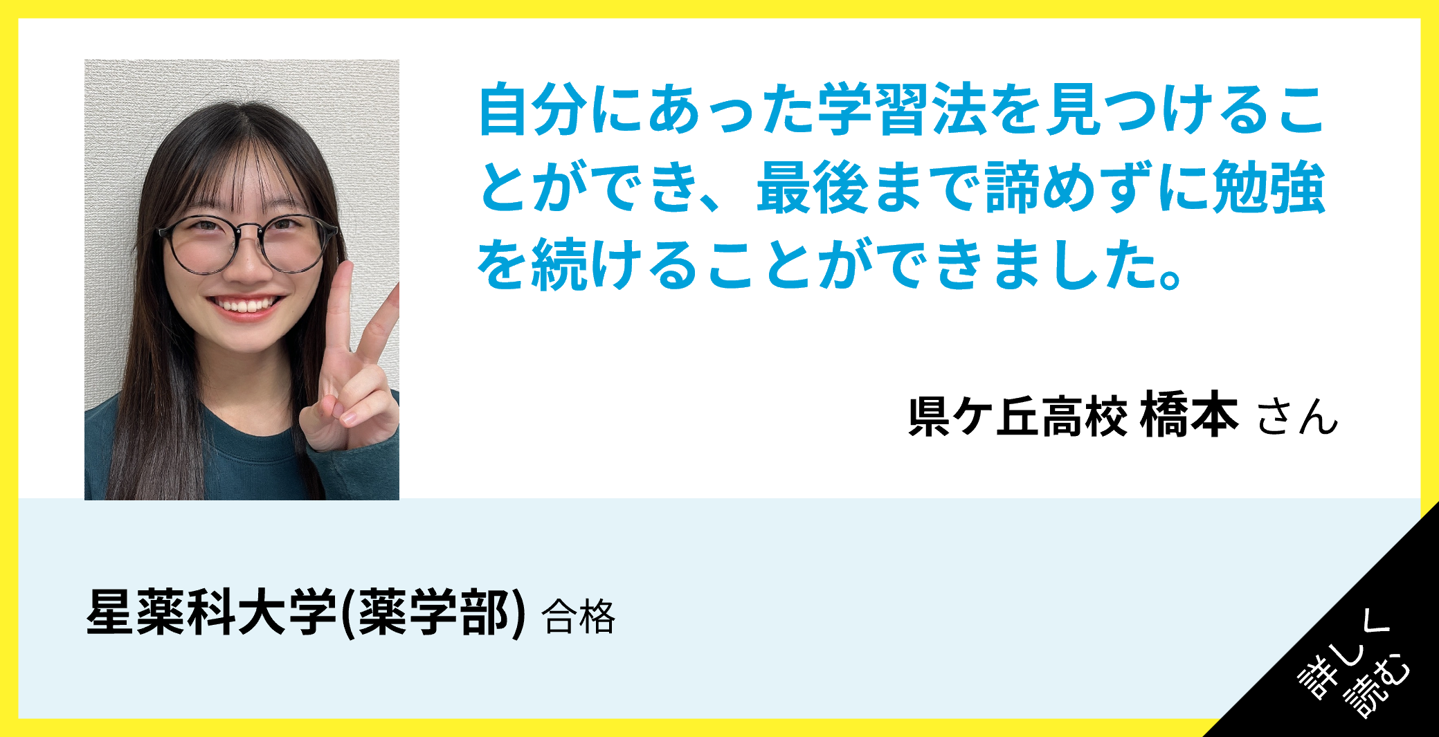 自分にあった学習法を見つけることができ、最後まで諦めずに勉強を続けることができました。