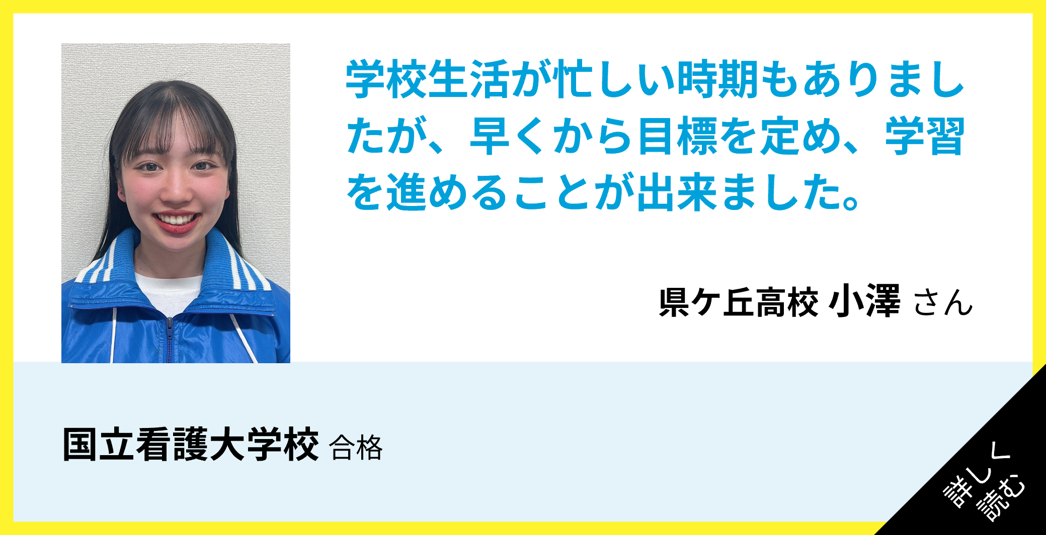 学校生活が忙しい時期もありましたが、早くから目標を定め、学習を進めることが出来ました。