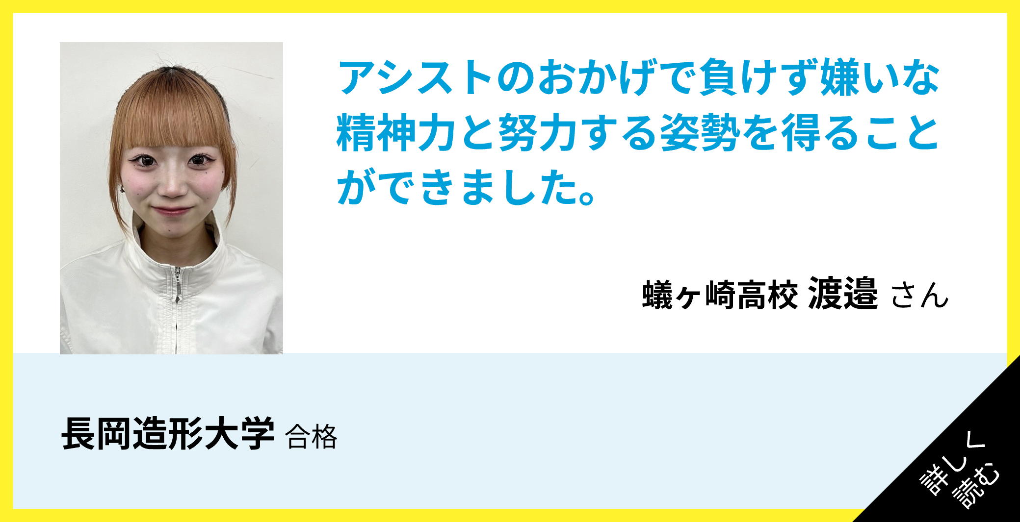 アシストのおかげで負けず嫌いな精神力と努力する姿勢を得ることができました。