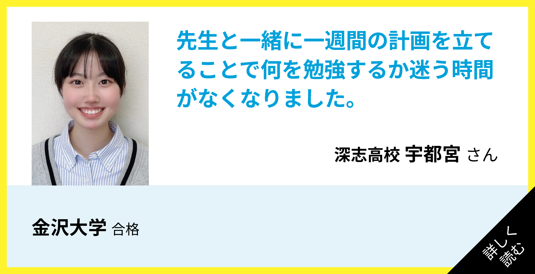 先生が自分にあった計画を一緒に立ててくれるので、受験から逆算した勉強を効率良く行うことができました。